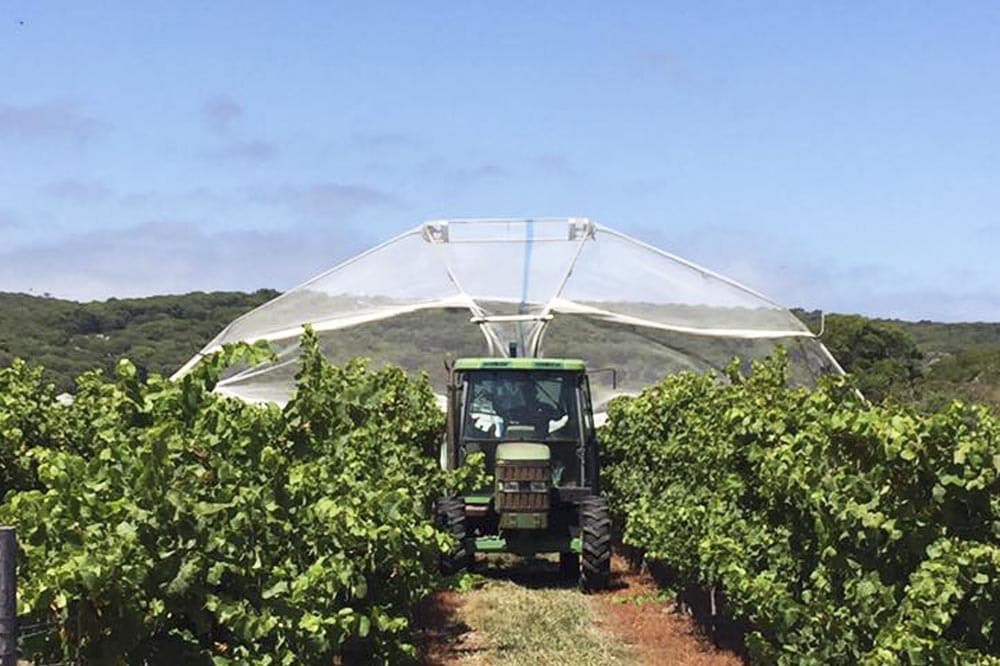The vineyard is netted each year to prevent damage to the fruit caused by birds prior to harvest